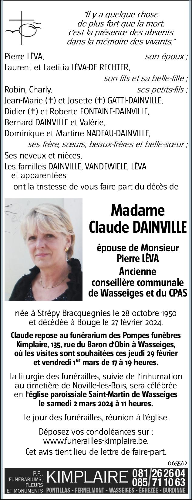 Vous souhaitez envoyer un message de soutien à la famille de DAINVILLE Claude ? Utilisez notre formulaire et nous lui transmettrons vos condoléances.